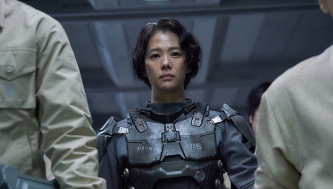 연합군의 최정예 용병, '전설의 용병'이라고 불리는 전투로봇 '윤정이'역을 맡은 김현주 배우가 열연을 했습니다. 김연주 배우는 인간과 인공지능 로봇의 두 가지 모습을 연기했습니다. [지옥]에서 연상호 감독과 같이 작품을 했으며 이 작품의 후반부에 강렬한 액션신을 선보이며 연기변신을 했습니다. 우리나라 나이로 47세인 김현주 배우는 '정이'를 통해 '지옥'보다 더 강한 액션여전사로 관록의 연기력을 뽐내고 있습니다.