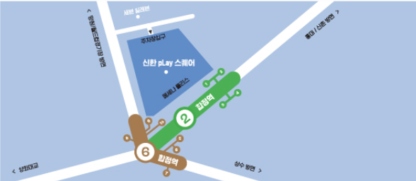 - 주소 : 서울 마포구 양화로 45 메세나폴리스 신한pLay 스퀘어 홀(2호선, 6호선 합정역) - 대중교통 이용 시 : 합정역 하차 ● 지하철은 합정역 9번, 10번 출구 사이 메세나폴리몰 지하 연결통로로 나오서 2층까지 에스컬레이터나 엘리베이터로 올라오면 됩니다 ● 버스 : 271, 602, 603, 760(간선버스), 921(좌석버스), 5712, 5714, 6712, 6716, 7011, 7013A, 7013B, 7612(지선버스), 1000, 1100, 1101, 1200, 1301, 1900, M6117, M6118(광역버스) - 차량 이용 ● 공연장 로비 내 위치한 주차할인기 이용(별도 티겟 확인 절차 없음) ● 할인기기에 차량번호 입력 후 할인권 적용 시 3시간 무료 주차 가능(기본 1시간 + 관람객 2시간 할인권 적용) ● 주차할인권 미적용 시 할인적용 불가, 주차시간 1시간 초과 시 10분 당 1000원 주차비 발생