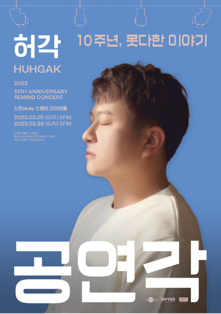 가수 허각은 오는 3월 25일부터 26일까지 서울 신한pLay 스퀘어 라이브홀에서 단독콘서트 '공연각:10주년, 못다한 이야기'로 팬들과 만날 예정입니다.