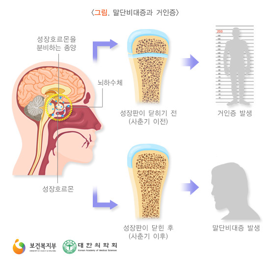 흔히 거인병·거인증이라고 불리는 말단비대증이란 성장이 끝난 후에 뇌하수체에서 성장호르몬을 분비하는 종양이 생겨서 얼굴과 손발이 커지는 질환입니다