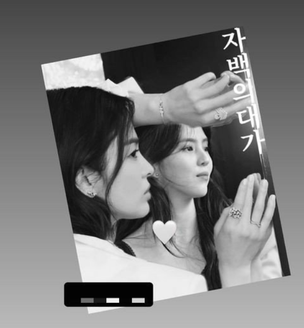 배우 송혜교와 한소희는 인스타그램을 통해 차기작 '자백의 대가' 출연을 예고해 시청자들의 기대감이 모우고 있고 있는데 두 배우는 '송혜교피셜', '한소희피셜'로 '자백의 대가'에서 서로 호흡을 맞춘다는 사실을 공개했습니다. 배우 한소희가 '자백의 대가 ' 가상 포스터로 보이는 이미지를 게개했습니다.