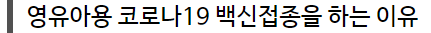 이와 같은 이유로 영유아 코로나19 백신접종의 필요성이 대두되고 있습니다.