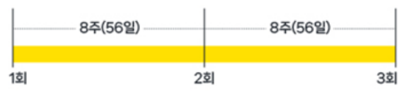 - 8주(56일) 간격으로 3회 실시